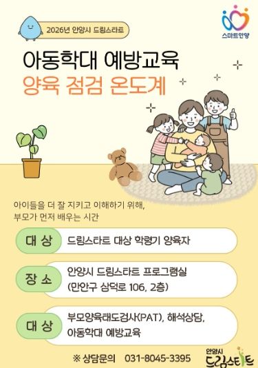 [와이뉴스] 안양시가 아동 학대를 사전에 차단하고 건강한 양육 환경을 조성하기 위해 맞춤형 부모 교육 프로그램인 ‘2026 드림스타트 양육 점검 온도계’를 본격 가동한다고 18일 밝혔다.