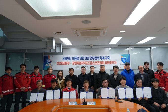 주요 협약 내용은 △드론을 활용한 산림감시 및 산불예방 활동 협력 △산림재난 대응을 위한 드론 전문 기술 교류 및 교육 협력 △산림재난 예방을 위한 합동 기동단속 및 홍보활동 등이다.