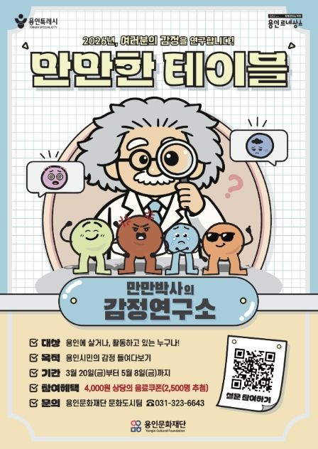 [와이뉴스] 용인문화재단은 문화예술을 통한 용인시민의 감정 해소에 대한 의견을 수렴하는 프로젝트 ‘2026 만만한 테이블’을 진행한다.