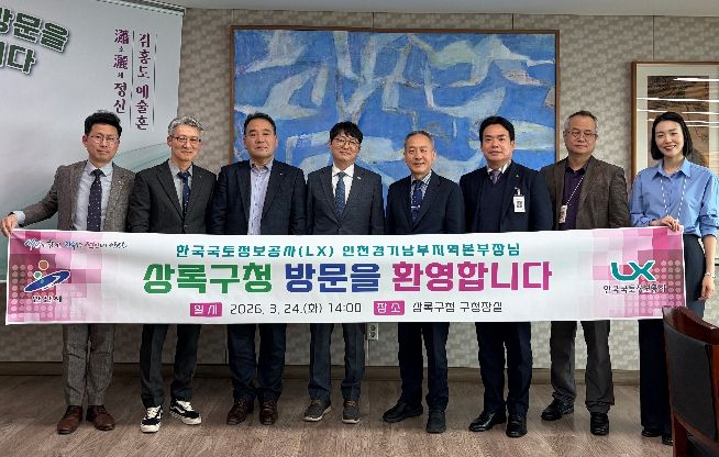 이날 간담회에는 한국국토정보공사 인천경기남부지역본부 관계자와 상록구·단원구 지적 업무 담당 공직자들이 참석해 ▲지적재조사사업 추진 현황 ▲세계측지계 좌표변환 사업 협력 방안 ▲지적기준점 관리 및 활용 ▲디지털 지적 구축 및 신규 사업 발굴 ▲지적 행정 발전 방향 등에 대해 다양한 의견을 나눴다.