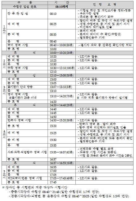 영어 영역의 경우 총 45문항 중 듣기평가는 17문항이며, 25분 이내 실시한다.