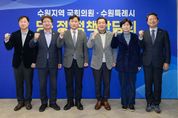 [와이뉴스] 이재준 수원시장은 5일 수원 지역 국회의원들과 정책간담회를 열고, “수원화성문화제를 비롯한 수원화성 3대 축제가 세계 3대 글로벌 축제로 도약할 수 있도록 힘을 보태달라”고 당부했다. 이날 간담회에는 이재준 시장과 백혜련(수원시을)·김영진(수원시병)·김승원(수원시갑)·염태영(수원시무)·김준혁(수원시정) 의원, 김현수 제1부시장, 현근택 제2부시장 등이 참석했다. 이재준 시장은 이날 간담회에서 ‘수원화성 3대 축제 글로벌 K-컬처 육성 전략’, ‘첨단과학 R&D 혁신도시를 만들기 위한 리딩 기업 유치 전략’ 등을 소개하고, “전략이 실현될 수 있도록 적극적으로 협력해 달라”고 말했다. ‘수원화성 3대 축제 글로벌 K-컬처 육성 전략’은 정부의 투자를 이끌어 정조대왕 능행차 공동재현(K-퍼레이드), 수원화성문화제(K-페스티벌), 수원화성 미디어아트(K-나이트)를 우리나라를 대표하는 글로벌 축제로 만드는 것이다. ‘첨단과학 R&D 혁신도시를 만들기 위한 리딩 기업 유치 전략’은 대기업의 연구소를 수원 경제자유구역 내에 유치해 R&D(연구개발) 벨트를 형성하는 것이다. 이재준 시장