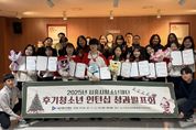 [와이뉴스] 재단법인 시흥시청소년재단은 지난 12월 5일 능곡청소년문화의집 다목적실에서 ‘2025년 후기청소년 체험형 인턴십 프로그램’ 성과발표회를 열었다. 후기청소년 체험형 인턴십 프로그램은 청소년지도자를 꿈꾸는 후기청소년(19~24세)을 대상으로 진행됐으며, 실무 기반의 직무 경험을 제공해 청소년들이 미래 진로를 구체화할 수 있도록 지원하기 위해 마련됐다. 올해 인턴십은 지난 4월, 8명의 인턴을 선발한 후 5월 전문교육을 시작으로 12월까지 약 8개월간 운영됐다. 시흥시청소년재단 소속 8개 시설(시흥시청소년수련관ㆍ은행청소년문화의집ㆍ연성청소년문화의집ㆍ매화청소년문화센터ㆍ월곶청소년문화의집ㆍ군자청소년문화센터ㆍ정왕청소년문화의집ㆍ시흥시학교밖청소년지원센터)의 직업 현장에 직접 참여해 1인당 평균 240시간의 실무 활동을 수행했다. 참여 청소년들은 기관별 청소년 프로그램 운영 보조, 기획ㆍ행정 지원, 지역사회 기반 활동 등 다양한 직무를 경험하며 실무 능력과 직업 이해도를 높였다. 또한, 현장에서 청소년지도자들과 멘토링을 진행하며 자신의 진로 역량을 체계적으로 확장해 나갔다. 특히, 프로그램 참가자들은 자신