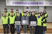 [와이뉴스] 광주시 도척면 지역사회보장협의체는 지난 23일 도척면 행정복지센터에서 2025년 제7차 임시회의를 개최했다. 이날 회의에서는 나눔문화 확산에 기여한 후원자를 대상으로 나눔 현판과 감사패를 전달하는 ‘도척 히어로 사업’과 연말 맞이 성금 기탁식이 진행됐으며 2026년 협의체가 추진할 12개 특화사업에 대한 심의도 함께 이뤄졌다. 특히, 2025년 도척 히어로로 선정된 ㈜현성종합목재, ㈜부강, 태극당 등 3개소에는 나눔 현판이 전달됐고 개인 후원자 1명에게는 감사패가 수여돼 지역사회 기부 문화의 의미를 되새기는 시간을 가졌다. 또한, 도척농협 임직원 10여 명이 참여해 십시일반 모은 성금 350만 원을 전달했으며 ㈜용진창호(대표 최병윤)도 성금 200만 원을 기탁해 연말을 앞두고 따뜻한 나눔을 실천했다. 이에 대해 고형근·이옥희 도척면 지보체 공동위원장은 “필요할 때마다 도움을 아끼지 않는 후원자들이 계시기에 협의체도 이웃을 위한 다양한 특화사업을 추진할 수 있다”며 “오늘 심의한 내년도 사업들이 내실 있게 추진될 수 있도록 최선을 다하겠다”고 밝혔다.