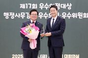 [와이뉴스] 경기도의회 건설교통위원회 허원 위원장(국민의힘, 이천2)은 26일 경기도의회 대회의실에서 열린 ‘2025년 경기도의회 시상식’에서 대한민국시도의회의장협의회가 수여하는 ‘제17회 우수의정대상’을 수상했다. 허원 위원장은 상임위원장으로서 도민 안전과 이동권을 핵심 가치로 삼아, 건설·교통 분야 주요 현안을 종합적으로 점검해왔다. 특히 정책의 실효성과 예산 집행의 책임성을 강화하는 데 중점을 두고 위원회 운영을 이끌어 왔다. 이를 바탕으로 위원회 심사 과정에서는 단순한 지적에 그치지 않고 관계기관과의 협의를 통해 대안 제시와 실행 점검을 병행하며, 정책이 실제 현장에서 작동하도록 사후관리와 성과 점검 체계를 강화하는 데 힘써 왔다. 아울러 사고 예방을 위한 시설 안전관리와 현장 점검, 행정사무감사를 통한 문제 진단과 후속 개선 요구, 예산안·결산 심사를 통한 비효율적 지출 정비와 재정 우선순위 재정립 등 위원회 운영 전반을 현장–제도–예산으로 연결하는 구조적 접근을 지속해 왔다. 이 같은 의정활동은 건설·교통 정책의 실효성을 높이고, 도민이 체감할 수 있는 안전과 이동 편의 개선으로 이어졌다