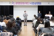 [와이뉴스] (재)광명문화재단은 3월 11일 수요일 광명시민회관 리허설룸에서‘2026년 광명문화재단 사업설명회’를 성황리에 개최했다고 밝혔다. 이번 설명회는 재단 사업에 관심있는 참여자들에게 재단의 2026년 비전과 중점 추진 방향을 공유하고, 지역문화, 공연·전시, 문화예술교육 및 지원 등 분야별 주요 사업을 소개하기 위해 마련됐다. 특히 재단에서 추진하는 공모사업은‘2026 광명문화재단 문화예술지원사업 통합공모’로 소개됐으며, 부서별 사업 설명을 통해 각 사업의 주요 내용과 운영 일정, 신청 방법 등을 상세히 안내했다. (재)광명문화재단 송은영 대표이사는 “이번 설명회는 재단이 준비한 다양한 사업을 시민 여러분께 직접 소개하고 의견을 나눌 수 있는 뜻깊은 자리였다”며 “앞으로도 더 많은 분들이 재단 사업에 관심을 갖고 편하게 참여할 수 있도록 노력하겠다”고 밝혔다. 지역 예술인과 문화예술 관계자, 시민 등 80여 명이 참석한 이번 설명회는 재단 사업에 대한 높은 관심을 확인 할 수 있는 자리였으며 촬영한 영상은 향후 광명문화재단 공식 유튜브 채널을 통해 확인할 수 있다.