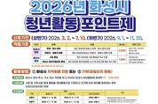 [와이뉴스] 화성특례시는 청년의 시정 참여와 지역사회 활동을 지원하기 위해 오는 3월 2일부터‘2026년 청년활동포인트제’를 본격 시행한다. 청년활동포인트제는 시정 홍보 및 지역사회 참여 활동을 청년 활동으로 지정해, 참여 사실을 증빙하면 포인트를 지급하는 제도다. 시는 지난해 청년들의 의견을 반영해 포인트 지급 규모를 연간 최대 15만 포인트로 확대했다. 참여 대상은 만 19세부터 39세까지의 청년으로, 화성시 축제·행사 참여, 관광지 탐방, 시정 홍보 활동 등에 참여한 후 증빙자료를 제출하면 연간 최대 15만 포인트를 받을 수 있다. 지급된 포인트는 화성시 지역화폐로 전환하거나 기부할 수 있다. 활동기간은 연 2회로, 상반기는 2026년 3월 2일부터 7월 10일까지, 하반기는 2026년 9월 1일부터 11월 30일까지 운영된다. 참여 신청은 경기도 일자리재단 통합접수시스템‘잡아바어플라이’를 통해 가능하며, 활동 증빙자료와 포인트 활용 신청서를 제출하면 된다. 이병희 청년청소년과장은“청년활동포인트제는 청년을 단순한 정책 수혜자가 아닌 정책의 주체로 바라보는 제도”라며“청년들이 지역사회와 연결되고