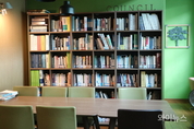 [와이뉴스] 화성특례시의회 1층 로비 옆 휴게 공간에는 책장에 꽂힌 읽을 거리와 앉을 의자와 탁자, 바깥이 보이는 창문이 있다. 옆에는 목을 축일 정수기와 난방 기기도 자리한다. -2026.01.26.