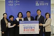 [와이뉴스] 수원시 팔달구와 구 지역사회보장협의체는 지난 15일 구청장실에서 ‘팔달구 이웃사랑 바자회’ 성금 전달식을 가졌다. 지난 9월 23일 팔달구 지역사회보장협의체가 주관하고, 관내 10개 동 지역사회보장협의체 및 사회복지시설, 유관기관이 힘을 모아 추진한 ‘팔달구 이웃사랑 바자회’ 행사를 통해 전달된 성금은 총 252만 1천원으로, 해당 성금은 팔달구 취약계층을 지원하기 위한 구 특화 사업에 사용할 예정이다. 권남호 구 지역사회보장협의체 공동위원장은 “이웃의 어려움을 함께 나누기 위해 한마음으로 참여해주신 분들께 감사드린다”며, “이번 성금이 지역 내 어려운 이웃들에게 따뜻한 희망으로 전해지길 바란다”고 말했다. 이상균 팔달구청장은 “팔달구민의 자발적인 참여와 나눔이 지역사회를 더욱 따뜻하게 만든다”며, “앞으로도 민관이 함께하는 복지공동체 실현을 위해 적극 노력하겠다”고 밝혔다.