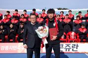 [와이뉴스] FC강릉(재단법인 강릉시민축구단)은 2026시즌을 앞두고 직무대행 체제였던 감독직위에 임다한 감독을 임명하여, 새 시즌을 향한 팀 운영 체제를 완성했다. 구단은 2026년 1월 30일, 임다한 감독 임명식을 개최했다. 이날 FC강릉 이사장인 김홍규 강릉시장이 직접 임명장을 수여하며, 감독 직무대행 체제로 운영되던 팀이 정식 감독 체제로 전환했음을 대외적으로 분명히 했다. 임다한 감독의 선임을 계기로 FC강릉은 2026시즌을 향한 지휘 체계를 명확히 정립하고, 전지훈련을 포함한 시즌 준비에 속도감 있게 돌입할 계획이다. 임명식 직후에는 2026시즌을 대비해 구성이 완료된 선수단(40명: 코치8, 선수단32)의 첫 공식 행사로 단체사진 촬영이 이어졌다. 이번 행사는 완성된 선수단의 현재 모습을 대중에게 처음 선보이는 자리로, 2026시즌 FC강릉의 출발을 상징하는 장면이 될 전망이다. 또한 김홍규 이사장은 전지훈련을 앞둔 선수단에게 격려와 응원의 메시지를 전하며 선전을 당부했고, 선수단 역시 새 시즌을 향한 각오와 결의를 다지는 시간을 가졌다. FC강릉 최윤순 단장은 “정식 감