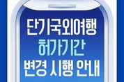 [와이뉴스] Q1. 단기국외여행 허가기간은 언제부터 변경되나요? - 2026년 5월 3일부터 변경됩니다. Q2. 단기국외여행 허가기간은 어떻게 변경되나요? - 1회 1개월 이내, 출국 후에는 2회까지 기간연장허가 가능합니다. * 통틀어 2년은 변경 없음 Q3. 변경 전까지는 종전 기준으로 국외여행허가가 가능한가요? - 2026년 5월 2일까지는 종전대로 1회 6개월 이내, 기간연장 횟수 제한없이 가능합니다. *27세를 초과하지 않는 범위 내 통틀어 2년 Q4. 단기국외여행 허가기간은 왜 변경하나요? - 단기국외여행을 본래 취지에 맞게 운영함으로써 국외여행허가제도의 공정성을 확보하기 위해서입니다. ※ 유의 사항 단기국외여행은 허가시작일 기준 90일 이내 범위에서 신청 가능