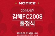 [와이뉴스] K리그2 무대에 첫 도전장을 내미는 김해FC2008(이하 김해FC)이 오는 22일 오후 2시, 롯데호텔앤리조트 김해에서 ‘2026시즌 출정식’을 개최한다. 이번 출정식에는 한국프로축구연맹, 대한축구협회 관계자, 스폰서, 시와 체육계 관계자를 비롯하여 서포터즈와 팬 등 내외빈이 참석하여 김해FC의 새로운 출발을 축하할 예정이다. 김해FC는 이날 행사에서 새롭게 개편된 선수단과 주장단을 소개하고, 2026시즌 구단의 비전과 목표를 공식 발표한다. 특히, 구단의 새로운 정체성을 담은 엠블럼이 적용된 신규 유니폼 실물이 이날 최초로 공개할 계획으로, 팬들의 기대를 모으고 있다. 아울러 뜻깊은 사회공헌 활동(CSR)도 진행된다. 김해FC는 지난 2025년 K3리그 우승으로 획득한 상금을 활용, 관내 유소년 축구팀과 아동시설에 후원 물품을 전달하며 ‘생활 속 시민구단’으로서의 가치를 실천할 계획이다. 김해FC 손병철 단장은 “이번 출정식은 선수단이 K리그2라는 새로운 무대에서 비상하겠다는 각오와 포부를 시민들께 약속드리는 자리”라며, “김해FC가 진정한 생활 속 시민구단으로 뿌리내릴