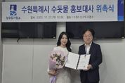[와이뉴스] 수원특례시는 리포터 이단비를 ‘수돗물 홍보대사’로 위촉했다. 위촉식은 23일 수원시 상수도사업소 소장실에서 열렸다. 이단비 리포터는 20년 베테랑 방송인으로서 친근하고 신뢰감 있는 이미지로 시민에게 잘 알려져 있다. 다양한 방송 활동을 하고 있다. 앞으로 수원의 깨끗하고 안전한 수돗물을 널리 알리는 홍보활동을 펼칠 예정이다. 수원시는 수돗물 홍보대사 위촉을 계기로 시민과 소통을 강화하고, 수돗물의 신뢰성과 투명성을 높이는 다양한 캠페인을 이어갈 계획이다. 수원시 관계자는 “이단비 홍보대사님은 친근한 이미지로 잘 알려져 있다”며 “깨끗하고 안전한 수돗물의 가치를 널리 알리는 데 큰 도움이 될 것”이라고 기대했다.