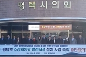 [와이뉴스] 평택시의회(의장 강정구)가 3일 오전 시의회 본관 앞에서‘평택호 수상태양광 발전시설 설치 중단 촉구 성명서’를 발표했다. 이날 성명서 발표에서 “평택호 일대에 국내 최대 규모의 수상태양광 발전은 수질오염, 생태계 교란, 재난 취약성, 농업·식수원과의 충돌 등 중대한 위험 요인을 내포하고 있다”며 “담수호 및 생태보전 지역은 공공의 생명·안전과 직결되는 공간인 만큼 사전 예방 원칙에 입각하여 이러한 시설의 설치는 원칙적으로 전면 배제돼야 한다”고 밝혔다. 이어 “평택호는 특정 기관이나 사업자의 소유물이 아니라 미래 세대에게 온전히 물려줘야 할 시민의 소중한 자산으로 중대한 환경 변화가 수반되는 사업은 자연과 시민의 삶을 존중하는 방향에서 추진돼야 하며 충분한 사전 설명과 사회적 합의가 반드시 선행돼야 한다”고 역설했다. 또한 “평택시의회 의원 일동은 평택호를 지켜야 할 책무를 가지고 졸속적이고 일방적으로 추진되고 있는 평택호 수상태양광 발전시설 설치 사업을 즉각 중단할 것 요구한다”고 밝혔다. 한국농어촌공사는 1월 19일, 평택호 수면을 활용한 550MW 규모의 수상태양광발전사업자 모집 공고를 게시했다. 사업 면적은 평택호 전체 만수 면적의 20%