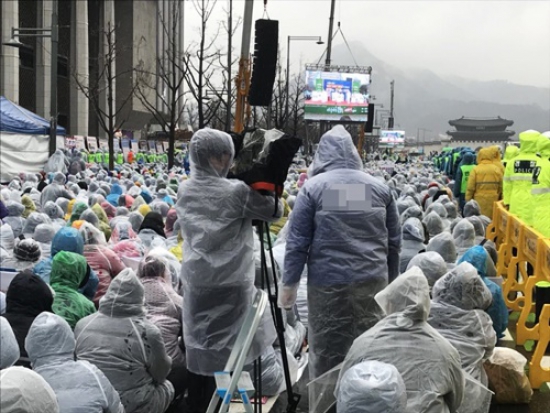 ▲ 신천지 신도들이 행사 무산 부분 등과 관련한 시위를 같은 날 광화문에서 열었다. (사진 제공 : 신천지)