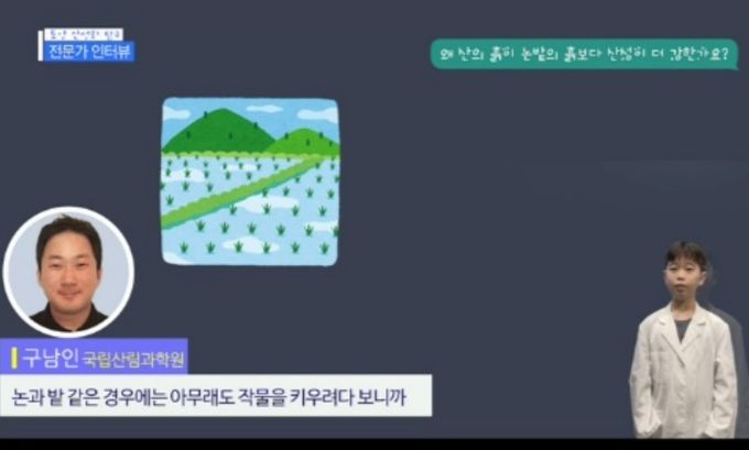 이번에 제작된 자료는 ‘우리 동네 뒷산에 파란 수국만 핀 까닭은?’이라는 제목의 토양 산성화 탐구편이다. 해당 자료는 아이들이 일상에서 쉽게 접하는 산과 들을 배경으로, 토양이 산성화되면 나무가 잘 자라지 못하고 동물들이 살기 어려워질 수 있다는 생태계 문제를 아이들의 눈높이에서 다루고 있다.