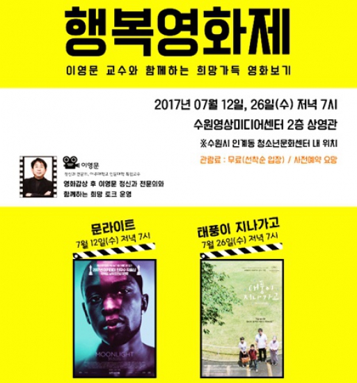 수원시행복정신건강센터와 수원영상미디어센터는 12·26일 저녁 7시 영상미디어센터 2층 은하수홀에서 정신건강의학과 전문의 이영문 교수와 함께 하는 ‘행복영화제’를 연다.