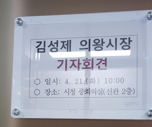 [와이뉴스] 김성제 의왕시장이 21일 오전 시청사 신관 2층 중회의실에서 기자회견을 열고 안양교도소 현대화 사업 추진 관련 입장문을 발표했다.