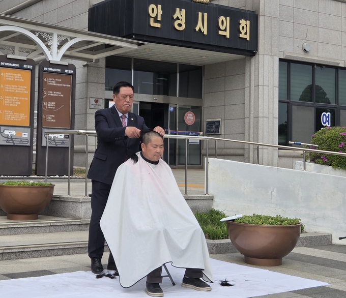 [와이뉴스] 최호섭 안성시의원이 앞선 22일 오후 안성시의회 정문에서 기자회견을 열고 “다선거구를 지켜내겠다”고 밝혔다.