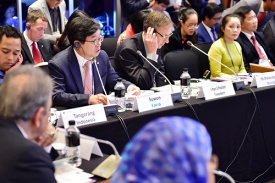 염 시장은 제3차 OECD 챔피언 시장회의 중 ‘포용적 성장 및 기후변화 관련 지역적 이행방안’을 주제로 열린 라운드테이블(원탁토의)에 바트볼드 순두이(Batbold Sundui) 몽골 울란바토르시장, 모하마드 알리 나자피(Mohammad Ali Najafi) 이란 테헤란시장, 빌 드 블라지오(Bill de Blasio) 미국 뉴욕시장과 참여했다.