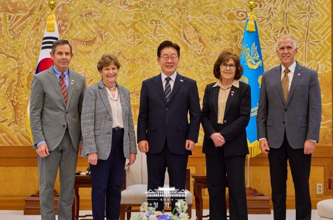 [와이뉴스] 이재명 대통령은 4월 2일 오후 청와대에서 진 섀힌(Jeanne Shaheen) 상원 외교위원회 간사 등 공화·민주 양당 의원으로 구성된 미국 상원의원 대표단을 접견했다. 이 대통령과 미 대표단은 한미동맹 및 한반도 문제를 비롯해 중동 전쟁의 안보적·경제적 파장과 대응 방안에 대해 심도 있는 의견을 교환하고, 향후 경제적 여파 대응 과정에서 한미가 긴밀히 소통해 나가는 것이 중요하다는 점에 뜻을 같이 했다.