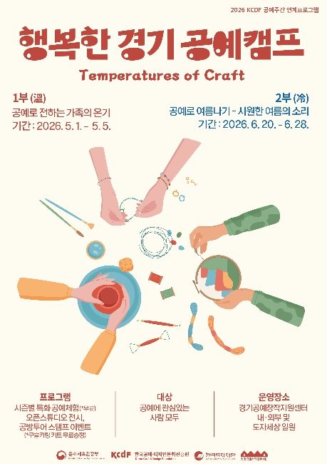 [와이뉴스] 한국도자재단이 오는 5월 1일부터 경기공예창작지원센터(여주) 일원에서 체험·전시·이벤트를 결합한 참여형 프로그램 ‘2026 행복한 경기 공예 캠프’를 개최한다.