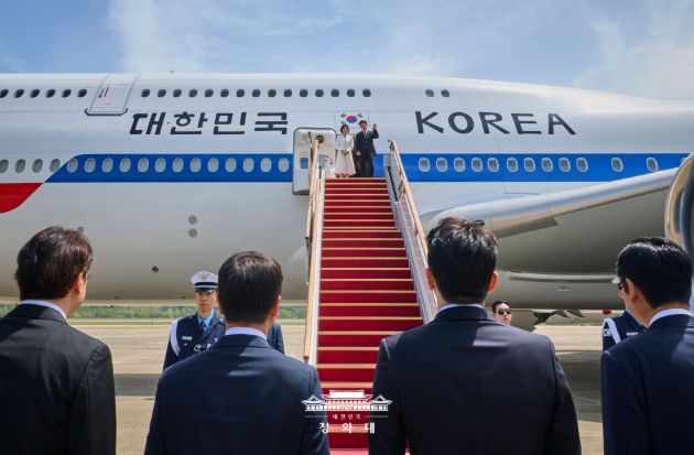 [와이뉴스] 이재명 대통령과 김혜경 여사는 5박 6일 일정의 인도 및 베트남 국빈 방문을 위해 19일 경기 성남 서울공항에서 대통령 전용기(공군 1호기)를 이용해 출국했다.