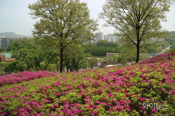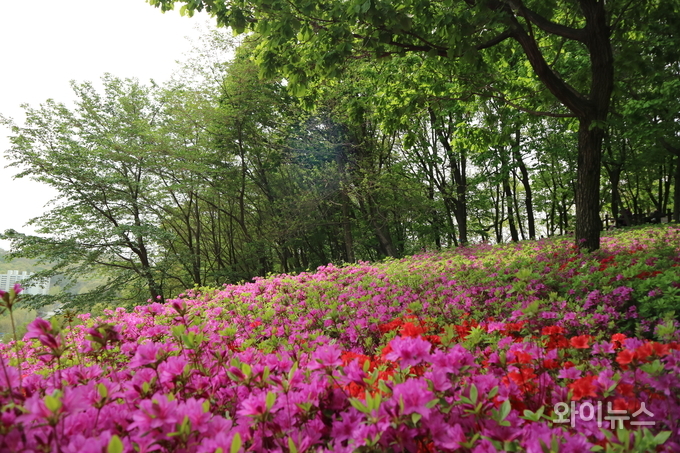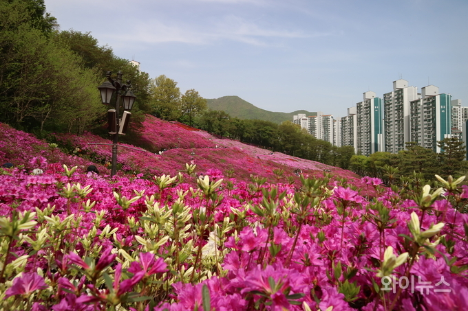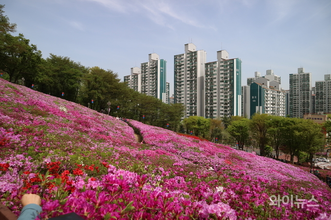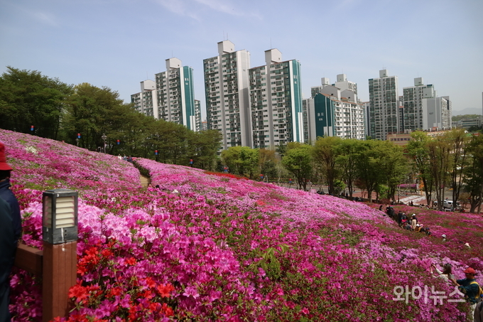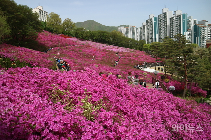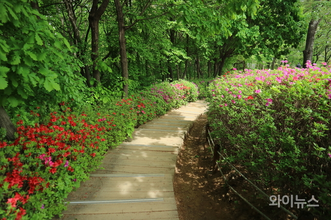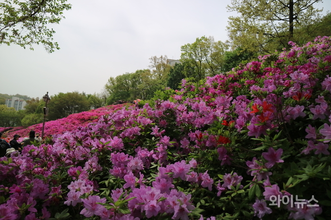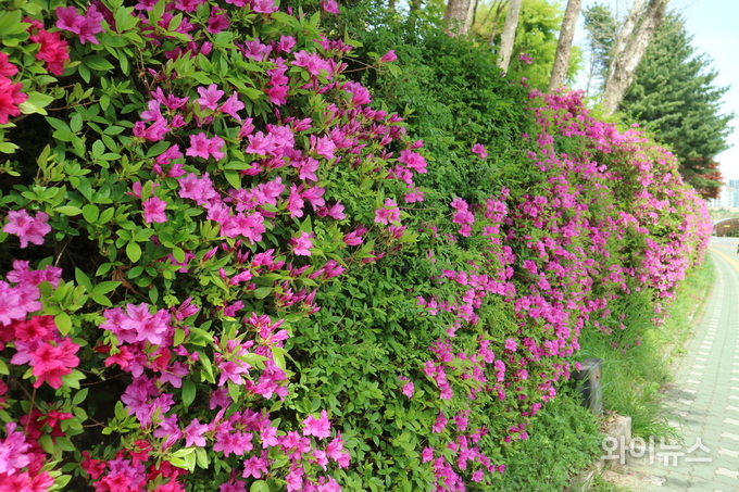 시민들은 활짝 핀 철쭉 꽃길을 걸으며 사진을 찍고 여유롭게 봄날을 즐겼다.