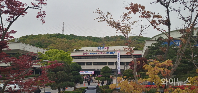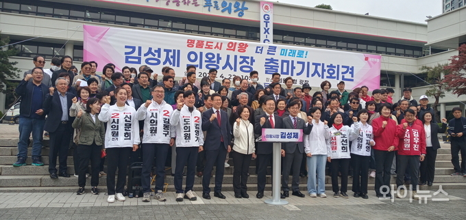 [와이뉴스] 김성제 의왕시장이 22일 오전 의왕시청 본관 앞 광장에서 오는 지방선거 출마 선언 기자회견을 열었다.
