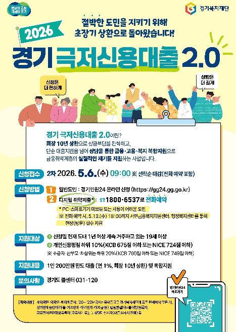 [와이뉴스] 경기도가 5월 6일 오전 9시부터 금융취약계층의 생활 안정을 지원하는 ‘경기 극저신용대출 2.0’ 2차 접수를 시작한다.