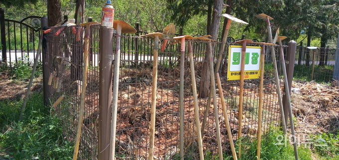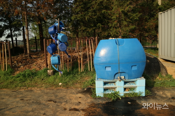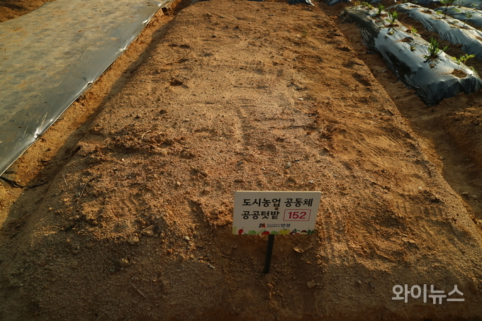 안성맞춤랜드 공공텃밭에는 물뿌리개와 호미, 괭이 등의 기본 농기구와 지하수, 비닐과 가위 등이 구비돼 있다.
