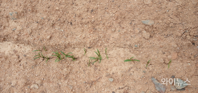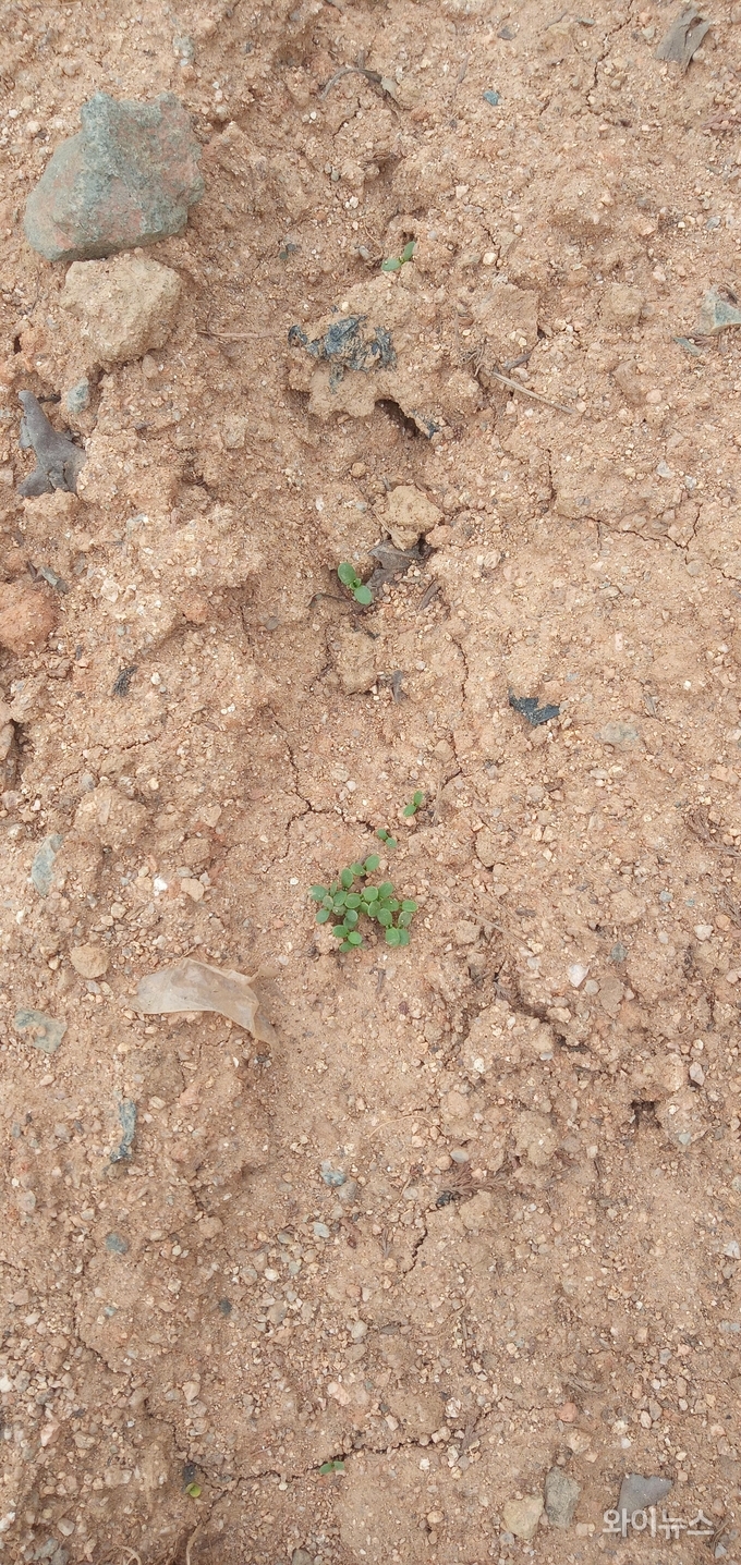 파종 후 3-4일경 싹이 트기 시작했으며 30일 현재 약간의 싹들이 자란 상태다.