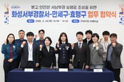 [와이뉴스] 화성서부경찰서(서장 최현아)가 앞선 24일 오후 만세구청 대회의실에서 관내 범죄취약지역의 환경 개선을 위해 만세구청, 효행구청과 업무협약(MOU)을 체결했다고 밝혔다. 이번 협약은 화성서부경찰서와 만세·효행구청이 협력하여 범죄취약지의 환경을 개선함으로써 지역사회의 체감안전도를 높이고, 선제적인 범죄예방 시스템을 구축하기 위해 마련됐다. 특히 이번 사업은 최근 구청 분리에 따른 업무 이관 과정에서 발생할 수 있는 치안 공백을 방지하고, 기관 간 긴밀한 협업을 통해 더욱 체계적인 범죄예방환경(CPTED)을 조성하는 데 목적이 있다. 협약에 따라 경찰은 범죄통계 및 치안 데이터 분석을 기반으로 조도 개선이 시급한 취약 지역을 발굴·선정하고, 각 구청은 해당 지역에 가로등 및 보안등 설치, 노호 시설 개보수 등 실질적인 환경 개선 사업을 담당하게 된다. 최현아 화성서부경찰서장은 “조도 개선은 범죄예방에 있어 가장 기본적이면서도 효과적인 방법 중 하나”라며 “지자체와 지속적인 협업을 통해 주민들이 밤거리를 안심하고 다닐 수 있는 안전한 치안 환경을 만들어 나가겠다”고 밝혔다. 화성서부경찰서와 양 구청은 앞으로도 상시 협력체계를 가동하여 범죄취약지에 대한